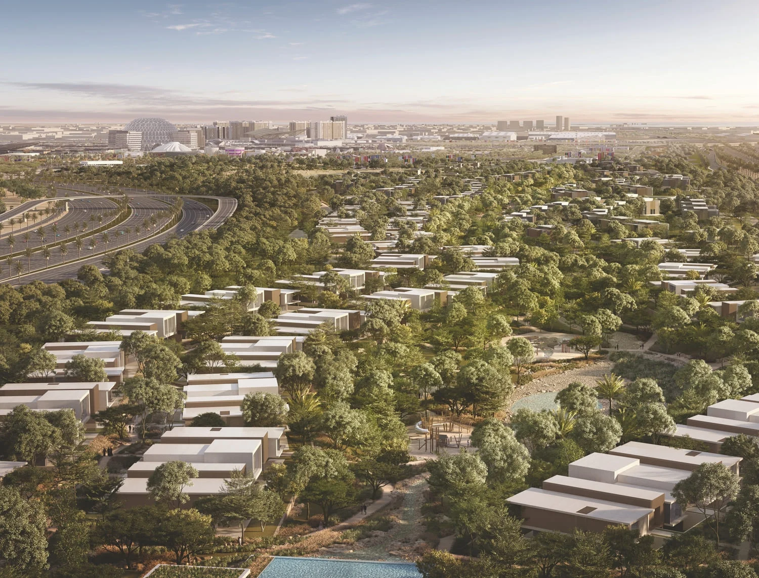 Expo Valley features villas and townhouses nestled within a captivating natural landscape, providing scenic views of a nature reserve, lake, and wadi. A beautiful community within Expo City Dubai, Expo Valley combines lush greenery with the ease of urban living. Homes offer privacy while keeping you effortlessly connected to a vibrant community. Enjoy a truly harmonious living experience that integrates nature, space and convenience, with all of Expo City Dubai’s attractions within easy reach.