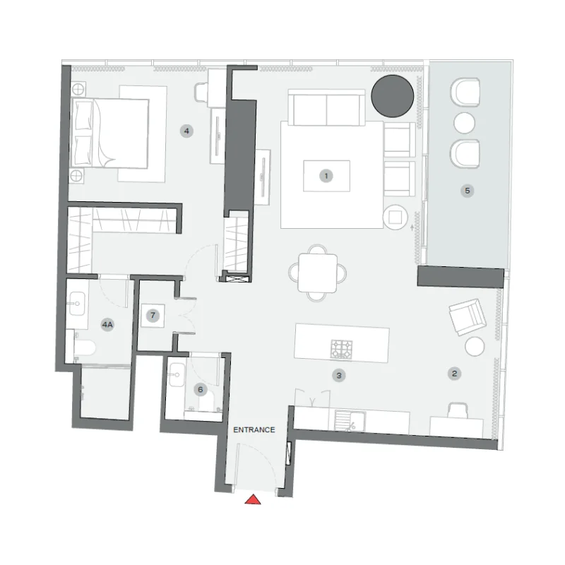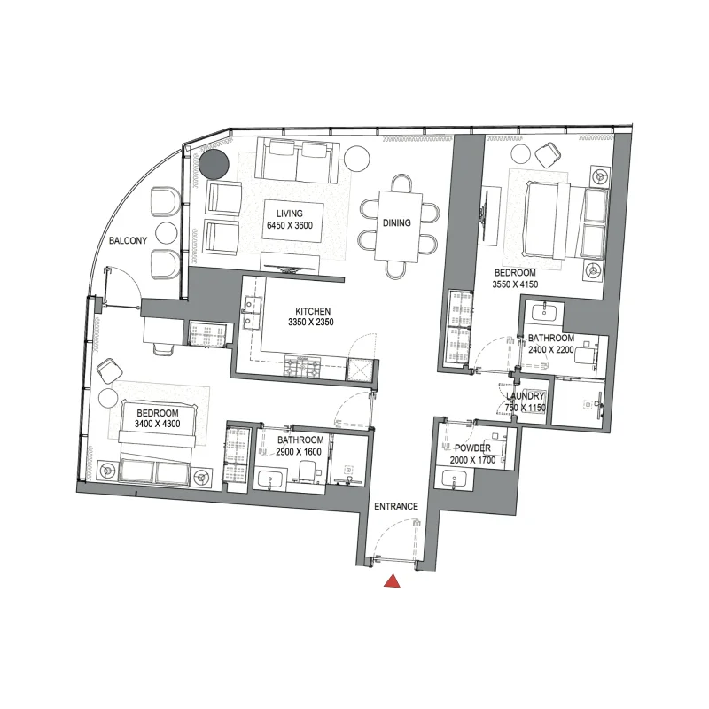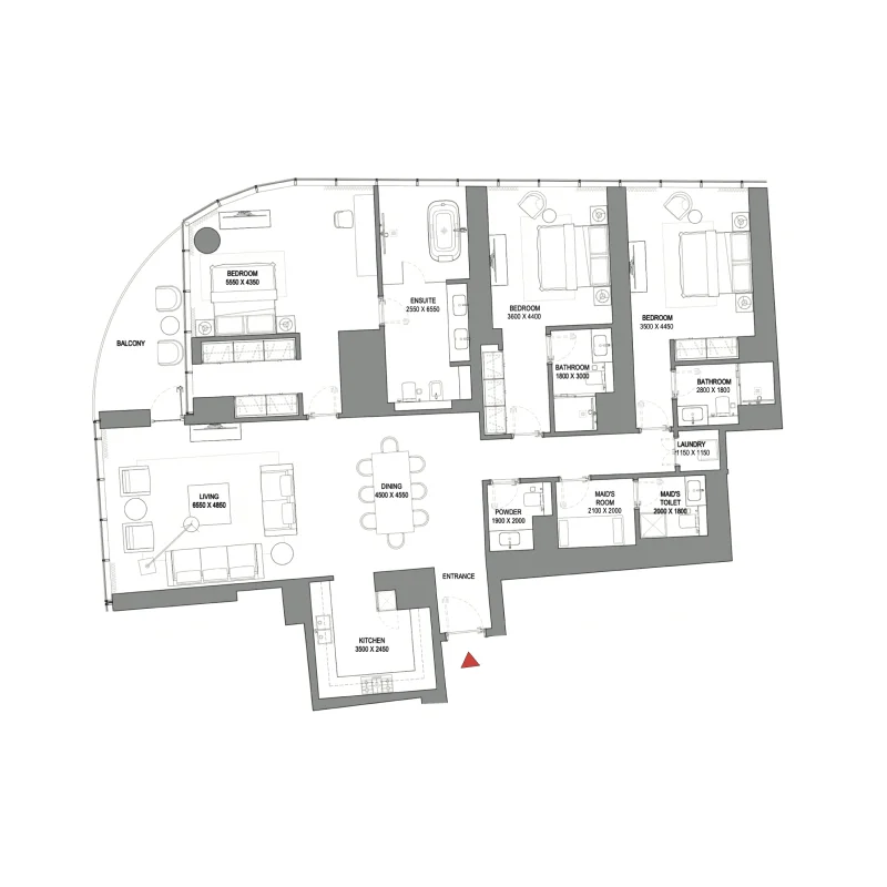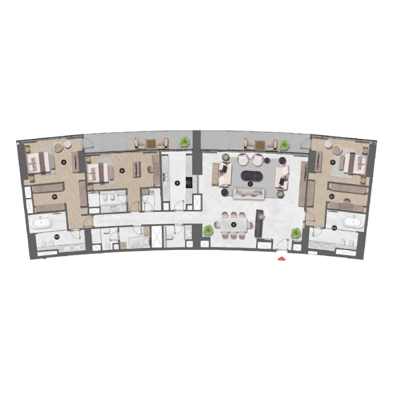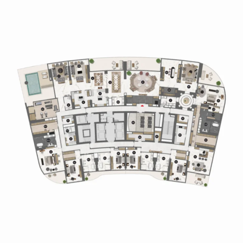 Extra large format Porcelain tile. Pre-Engineered timber flooring. Contemporary & stylish Carpet. Veneer finished solid core tall & elegant doors. Marble & Solid surface counter tops. Doubly Glazed Floor to Ceiling glass curtain wall. Leatherette & rich veneer finished wardrobes. Clear heights of 3 meters in Living areas. Smart Home automation enabled. State-of-art home appliances. Elegant Single slot diffusers. Flexi track lighting.