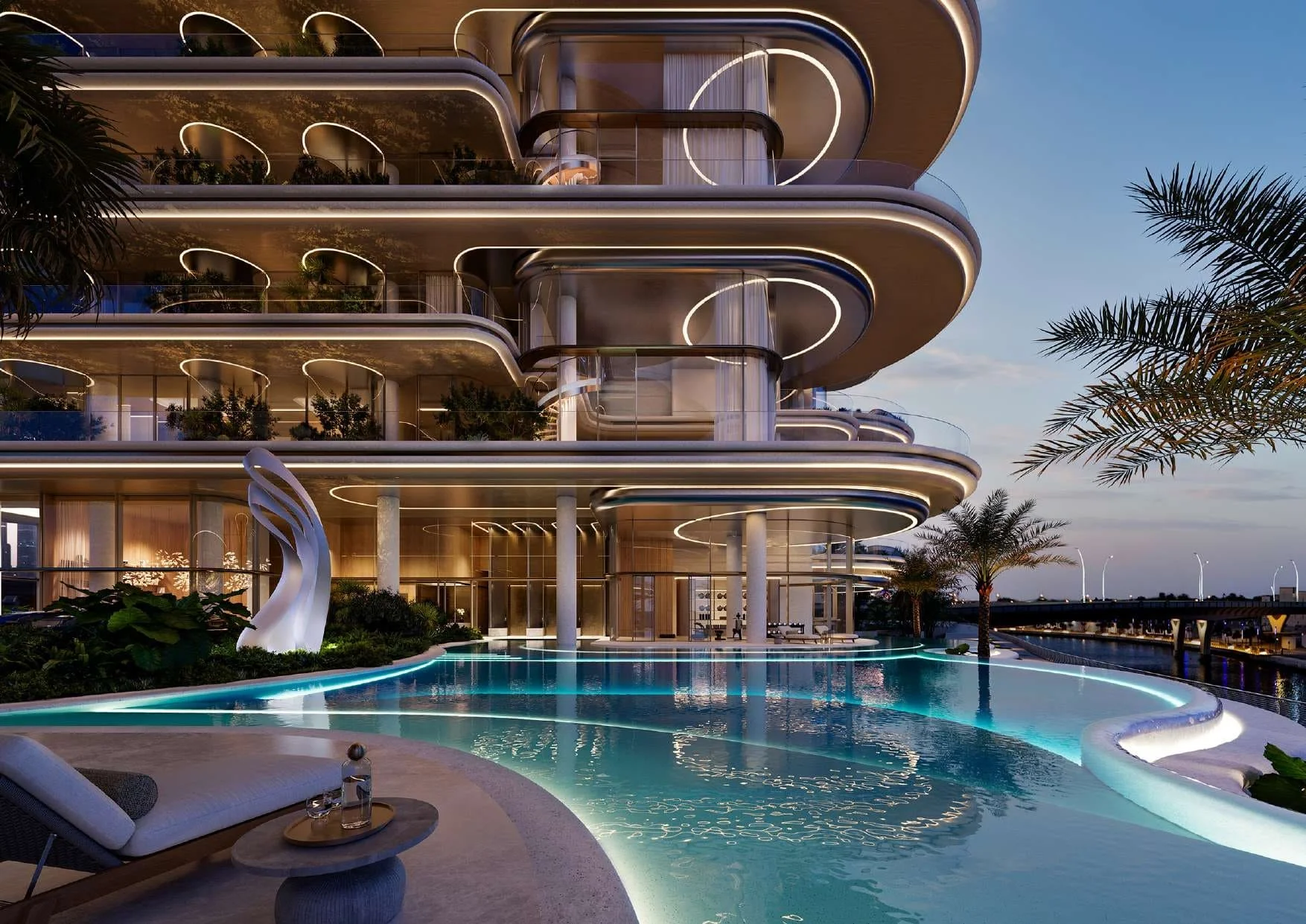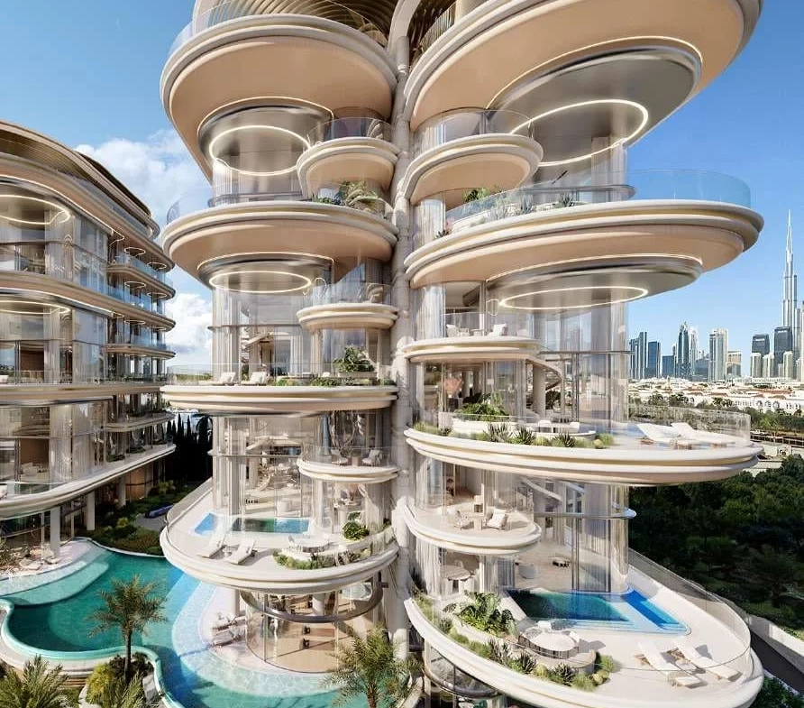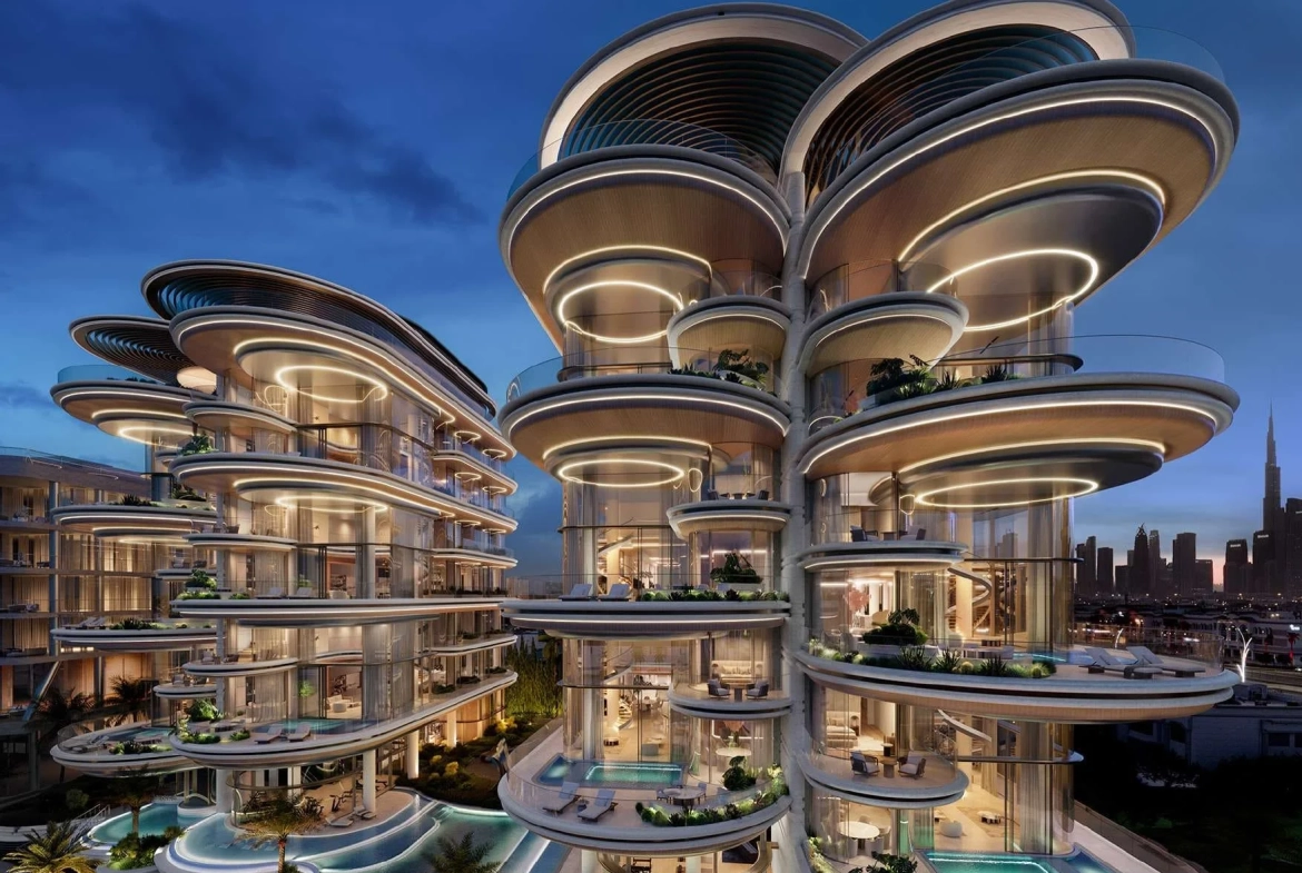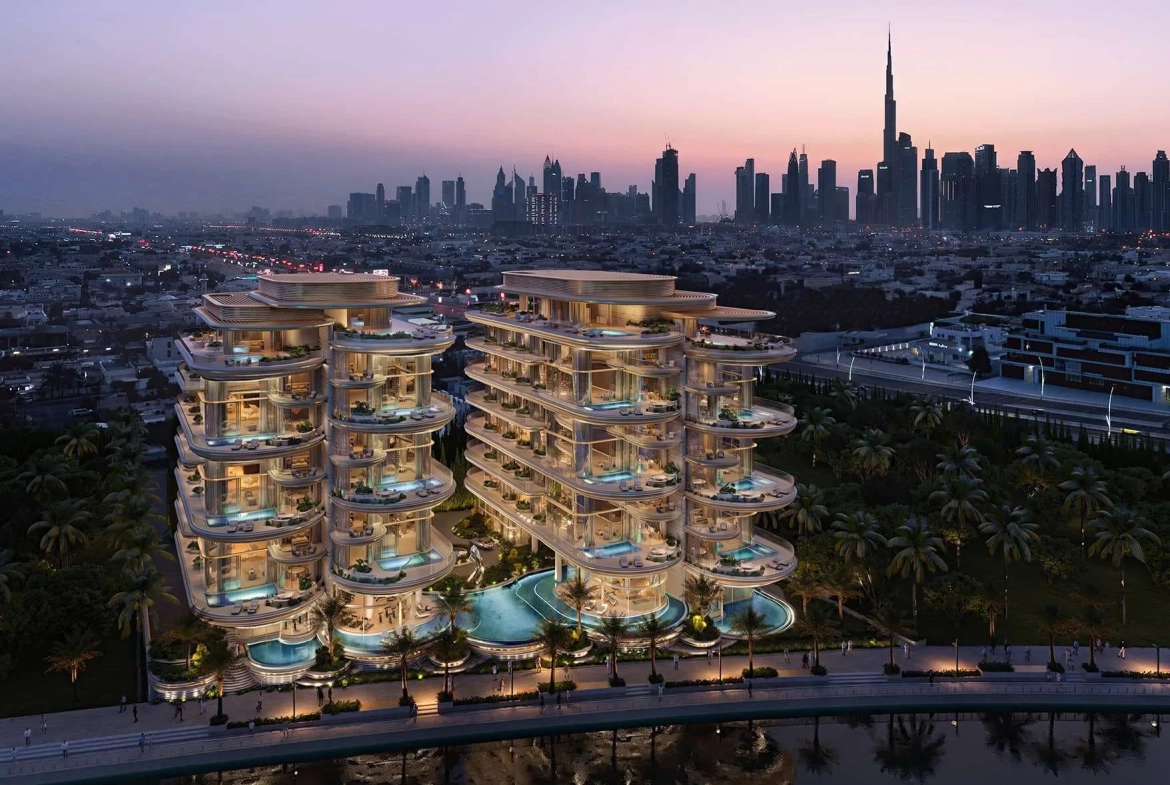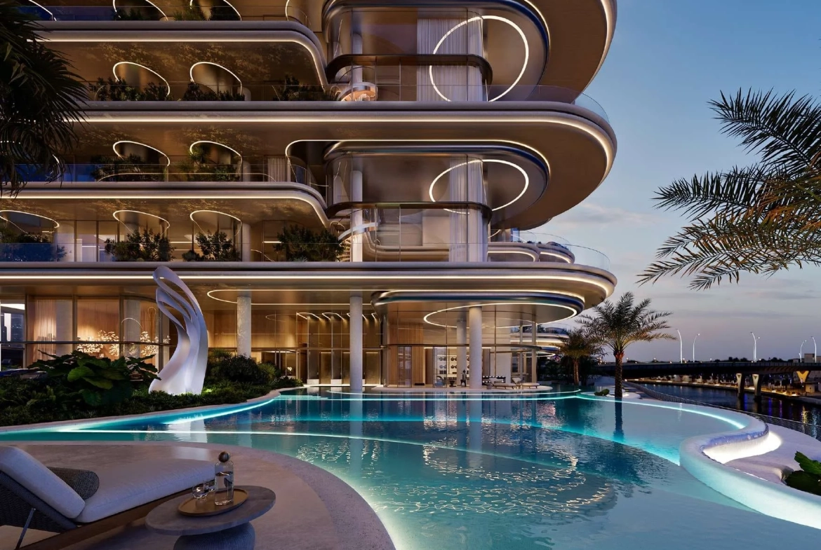 The lavish residences within each mansion range from 9,000 to 16,000 sq ft, presenting as duplexes or triplexes with expansive double-height living areas. Boasting private swimming pools, elevators, gyms, cinemas, extensive garden terraces, and floor-to-ceiling windows, these homes redefine opulence. Residents are treated to sweeping 180-degree views of the Dubai Water Canal and the iconic Burj Khalifa, providing an unparalleled visual spectacle.