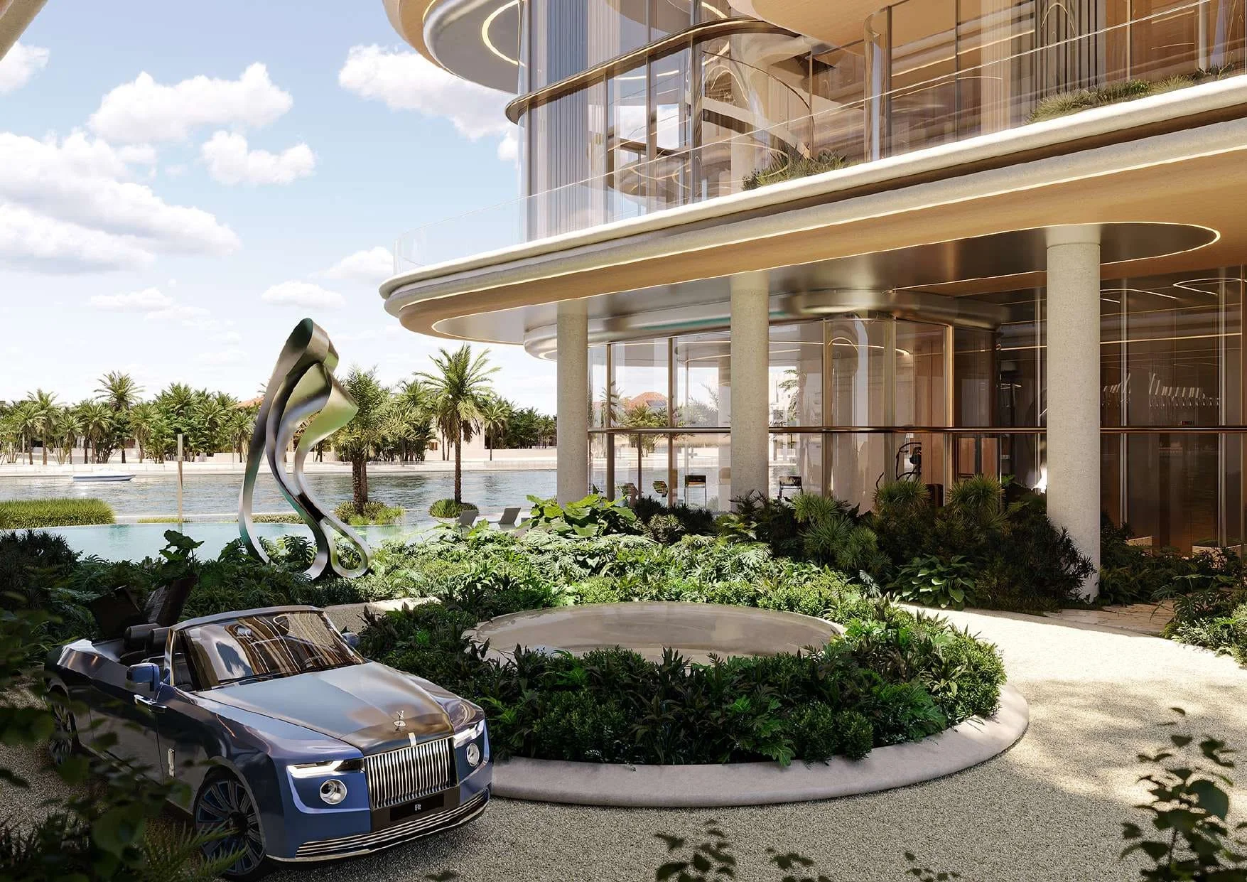 As you enter The Rings, a grand double-height lobby surrounded by reflective pools sets the stage for a truly immersive experience. Convenience is elevated with personalized underground parking pods, featuring a private car showroom and lifts that seamlessly connect to the residential units.